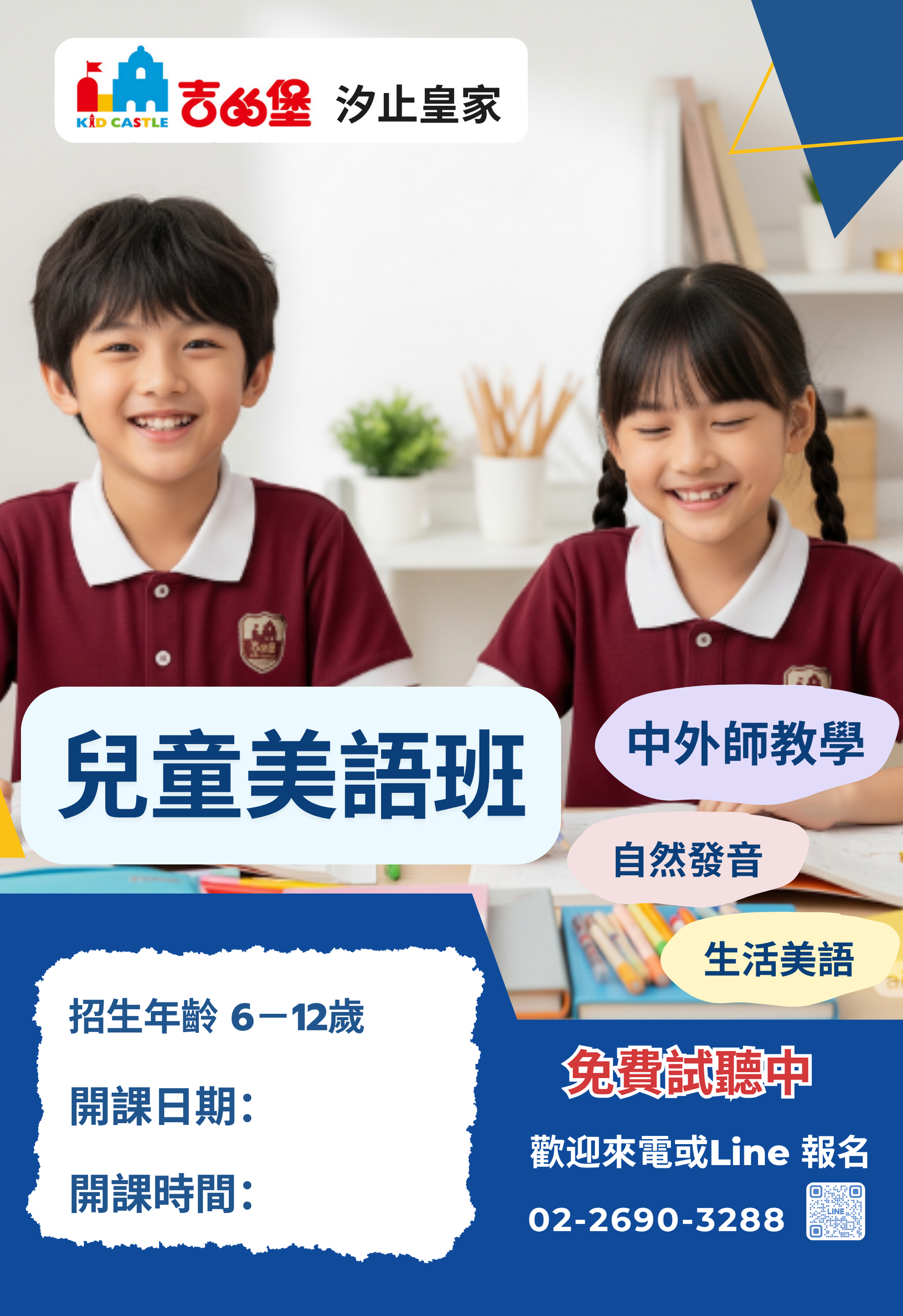 汐止吉的堡美語開新的班啦!🎉 孩子開學準備好了嗎?讓最專業的團隊陪孩子穩定銜接、快樂學習!地點|汐止區新台五路一段173號1樓適合年齡|幼兒園~小學中年級新班開課|八月陸續開班,歡迎預約試上!🗓️ 填表免費試聽 課程介紹